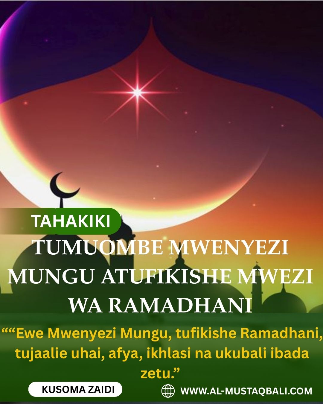 TUMUOMBE MWENYEZI MUNGU ATUFIKISHE MWEZI WA RAMADHANI