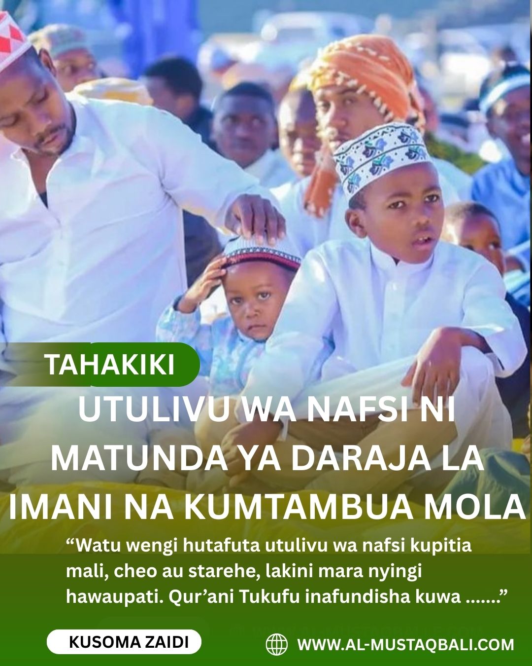 UTULIVU WA NAFSI NI MATUNDA YA DARAJA LA IMANI NA KUMTAMBUA MOLA